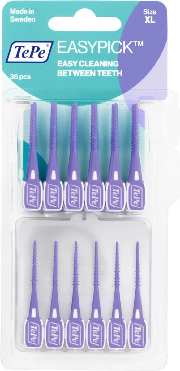 TePe EasyPick is een zachte siliconen tandenstoker waarmee je eenvoudig en efficiënt tussen de tanden kan reinigen. De EasyPick helpt tandplak en voedselresten tussen de tanden en kiezen te verwijderen en zorgt tegelijkertijd voor een massage van het tandvlees, waardoor het tandvlees gezond en stevig blijft. Ook tijdens het dragen van beugels, implantaten of kronen. De unieke combinatie van materialen maakt het flexibel, duurzaam en comfortabel in gebruik.