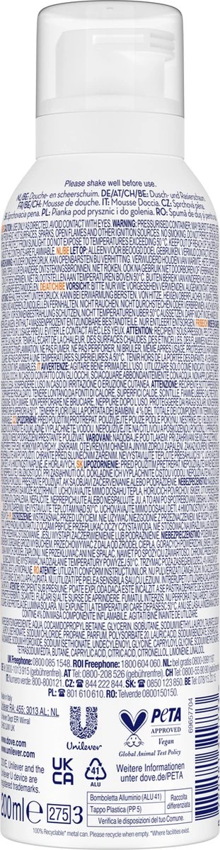 Dove Bath Therapy Glow Douche- & Scheerschuim bevat niacinamide (vitamine B3), dat de peptide vorming in de huid stimuleert en zo de vernieuwing van je huid ondersteunt. Voor een gezond en stralend aanvoelende huid. Met natuurlijke vochtinbrengers, die je huid hydrateren en zacht doen aanvoelen. De verpakking van het schuim is bovendien gemaakt van 100% recyclebaar aluminium.