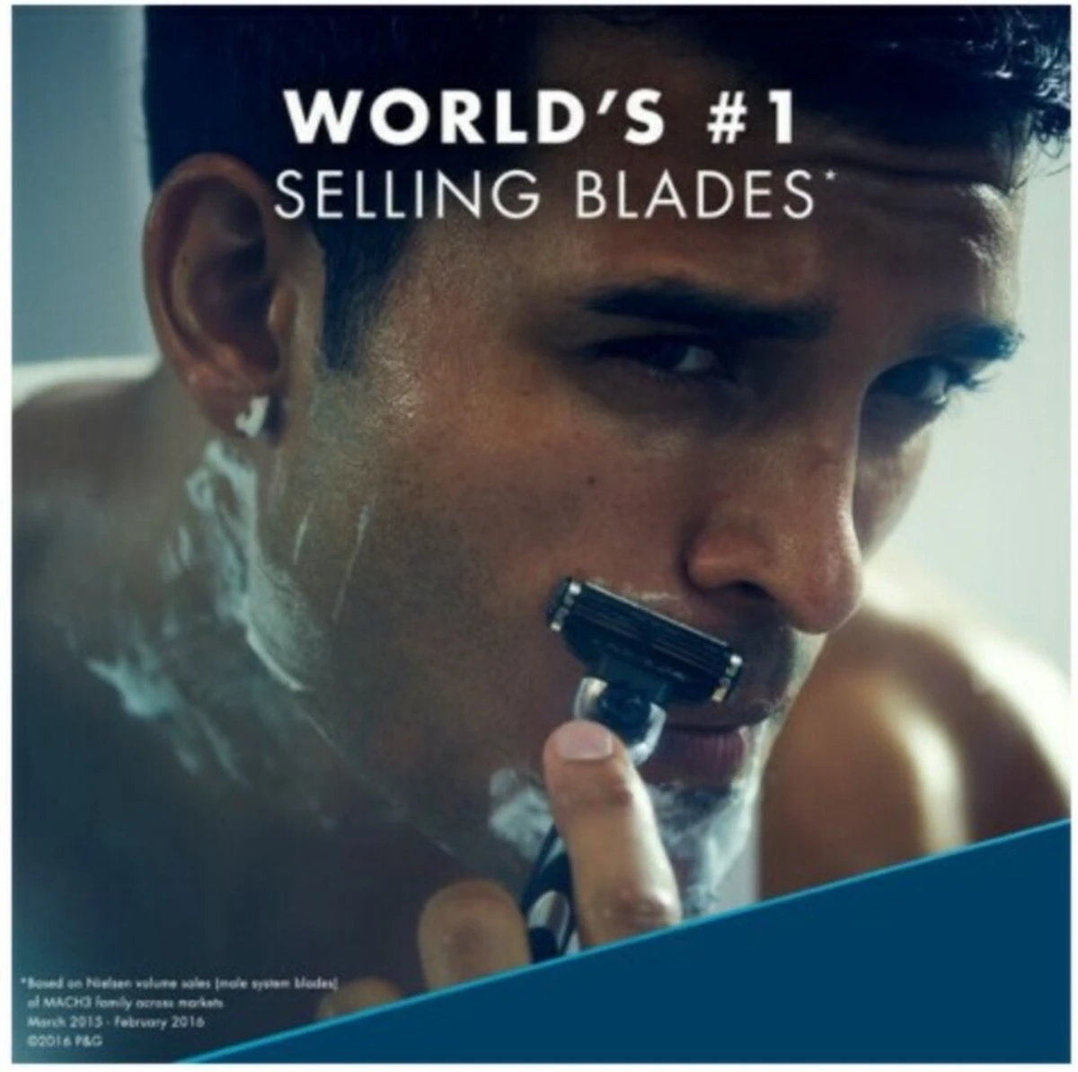 Gillette Mach3 scheermesjes scheren dichter op de huid in één beweging. 50% minder druk van de mesjes op de huid voor gegarandeerd scheren zonder roodheid. (t.o.v. Gillette dubbelbladige roterende wegwerpmesjes). – Superieur uitgelijnd scheermesje t.o.v. Gillette BlueII – Geavanceerd draaiend scheerhoofd t.o.v. Gillette® BlueII Wegwerpmesjes – Individueel verende mesjes – Lubricatiestrip – Microfin skinguard Alle Mach3 Scheermesjes kunnen worden gebruikt op alle Mach3 Scheersystemen Nanodunne mesjes die dichter op de huid scheren, tot 100% zonder roodheid (t.o.v. Gillette BlueII Wegwerpmesjes)