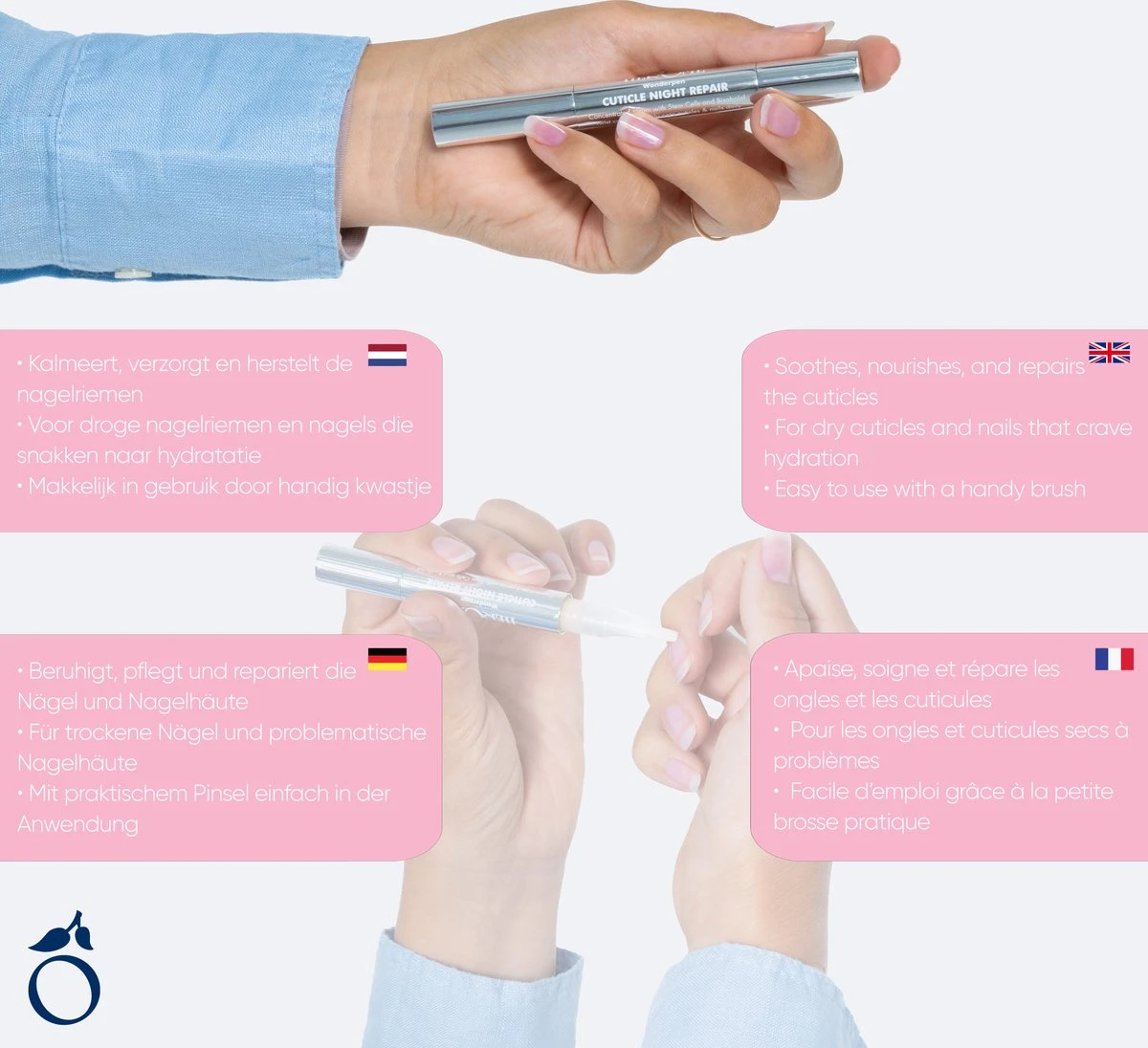 Hét reddingsmiddel voor geïrriteerde nagelriemen: de Cuticle Night Repair. Dit ultraverzorgende serum – in handig penformaat – hydrateert, kalmeert én voedt de nagelriem.