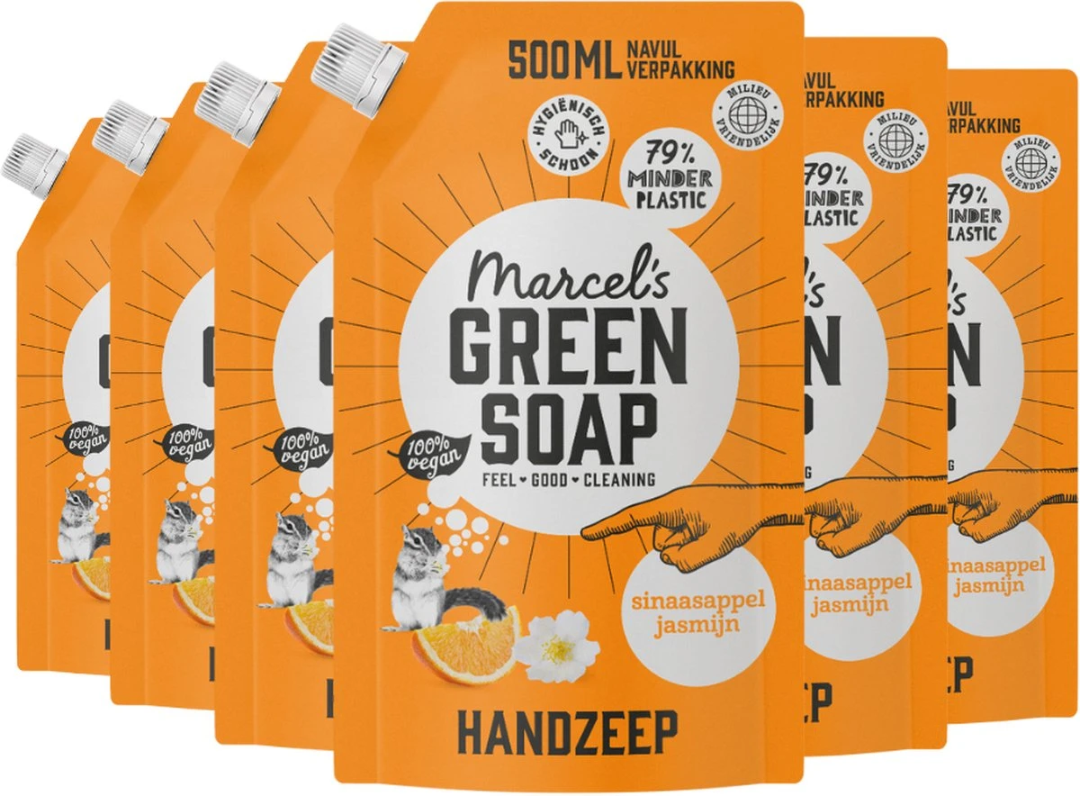 Marcel’s Green Soap Handzeep Sinaasappel & Jasmijn Navulling – 6 X 500 Ml