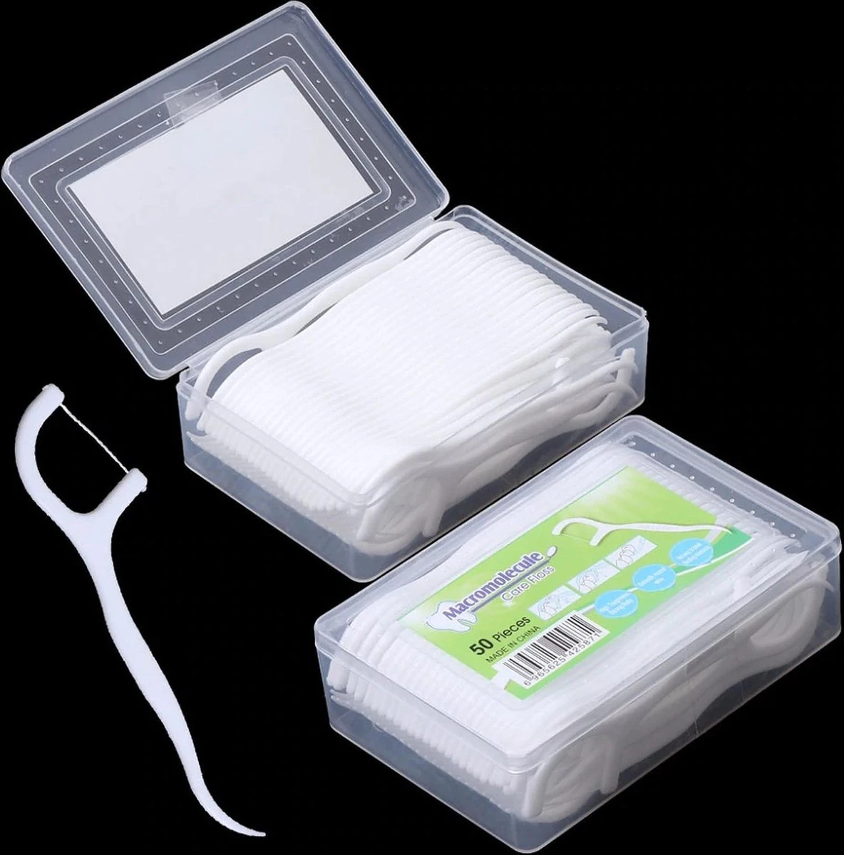 Flossen verwijdert tandplak tussen de tanden effectief, tandheelkundige stok verwijdert voedsel van tussen de tanden en stimuleert het tandvlees