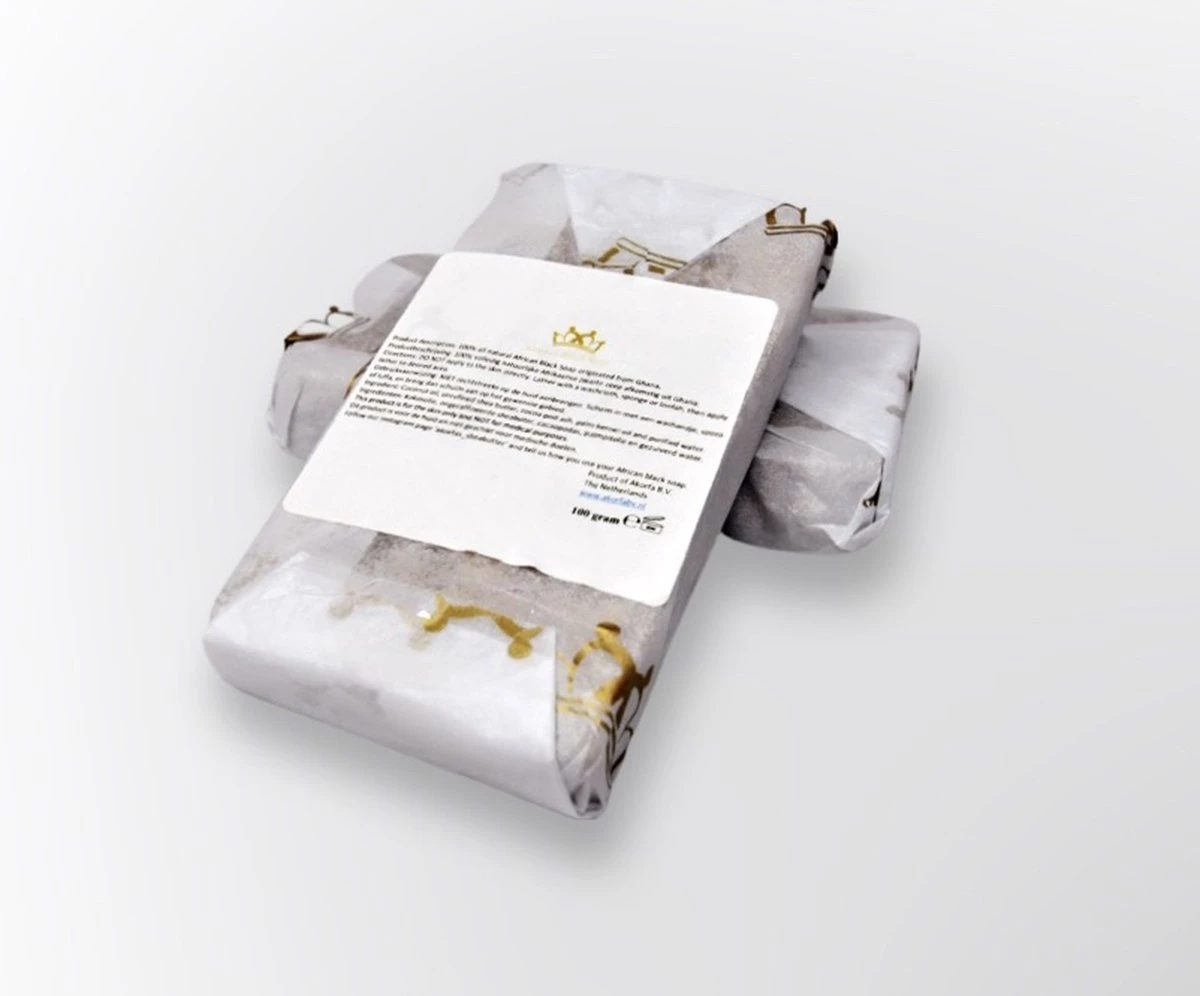 Productbeschrijving: 100% volledig biologisch Afrikaanse zwarte zeep afkomstig uit Ghana.