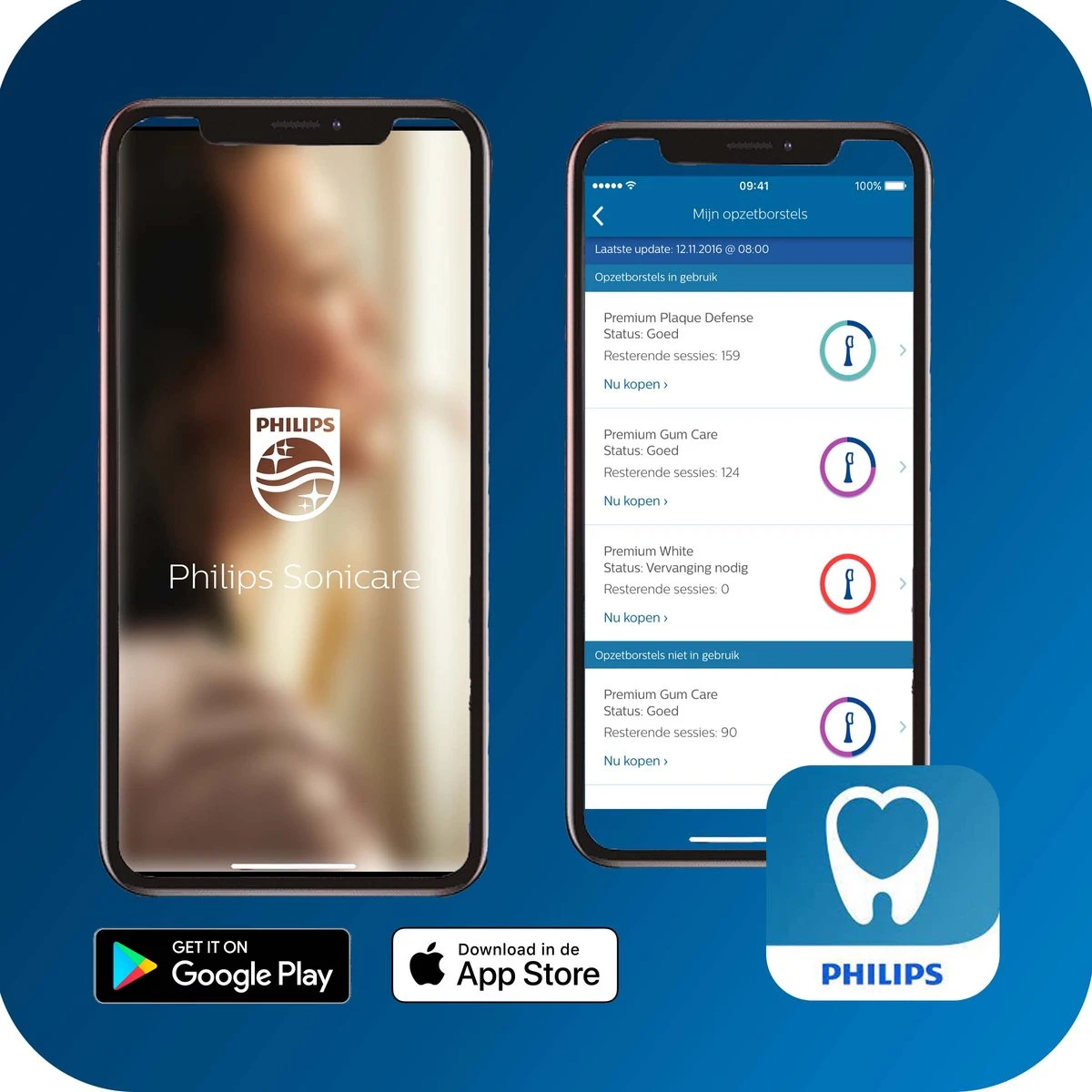 - BrushSync-technologie: Koppelt de slimme tandenborstel met, slimme opzetborstel