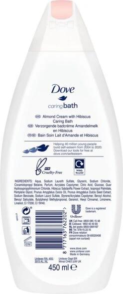 Dove Caring Bath Amandelmelk & Hibiscus Badcrème – 6 X 450 Ml – Voordeelverpakking