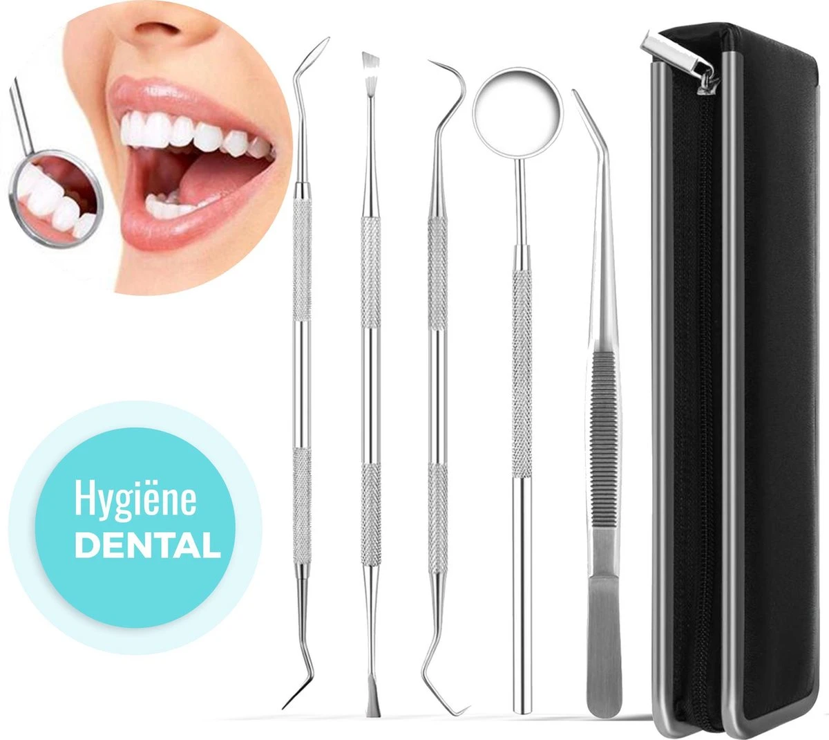 Tandarts Setje – Professioneel – Tandsteen Verwijderaar – Mondspiegel – Tandartshaakje – Tandsteenhaakje – Gebitsverzorging – Inclusief Luxe Etui – 6-delig – RVS