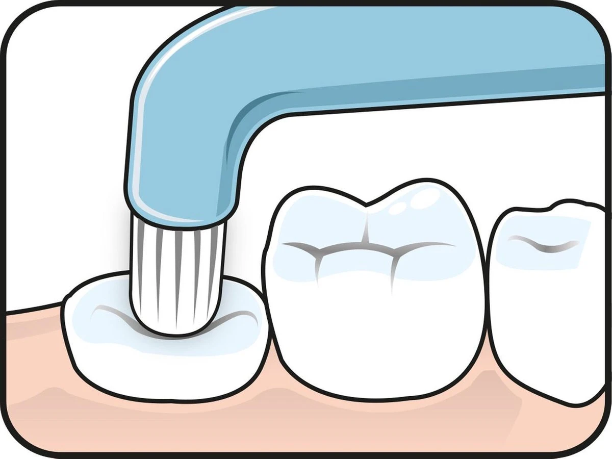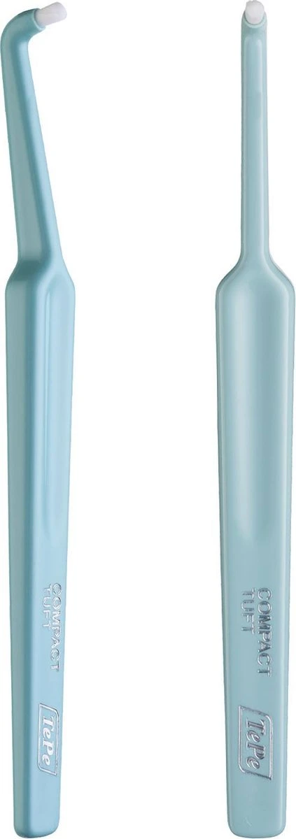De Compact Tuft is een stompe, compacte borstel met een gehoekte nek. De borstelharen zijn extra zacht en kort. De smalle, soepele borstelkop bereikt ook moeilijk bereikbare vlakken.