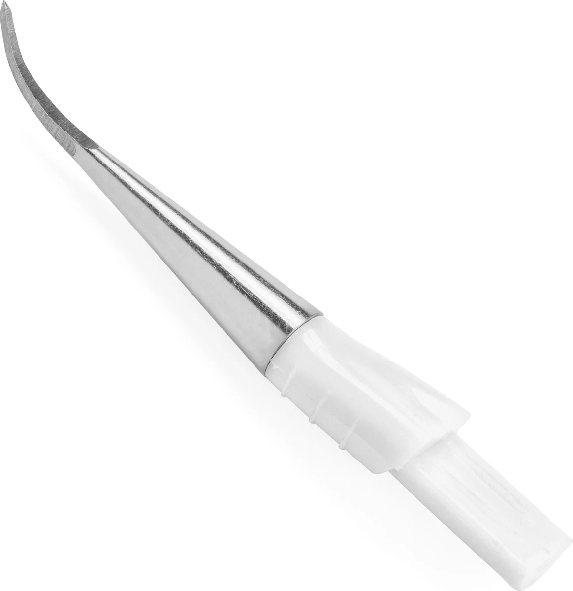 - Kies het opzetstuk dat u wilt gebruiken: het roestvrijstalen haakje of de siliconen flosspunt.